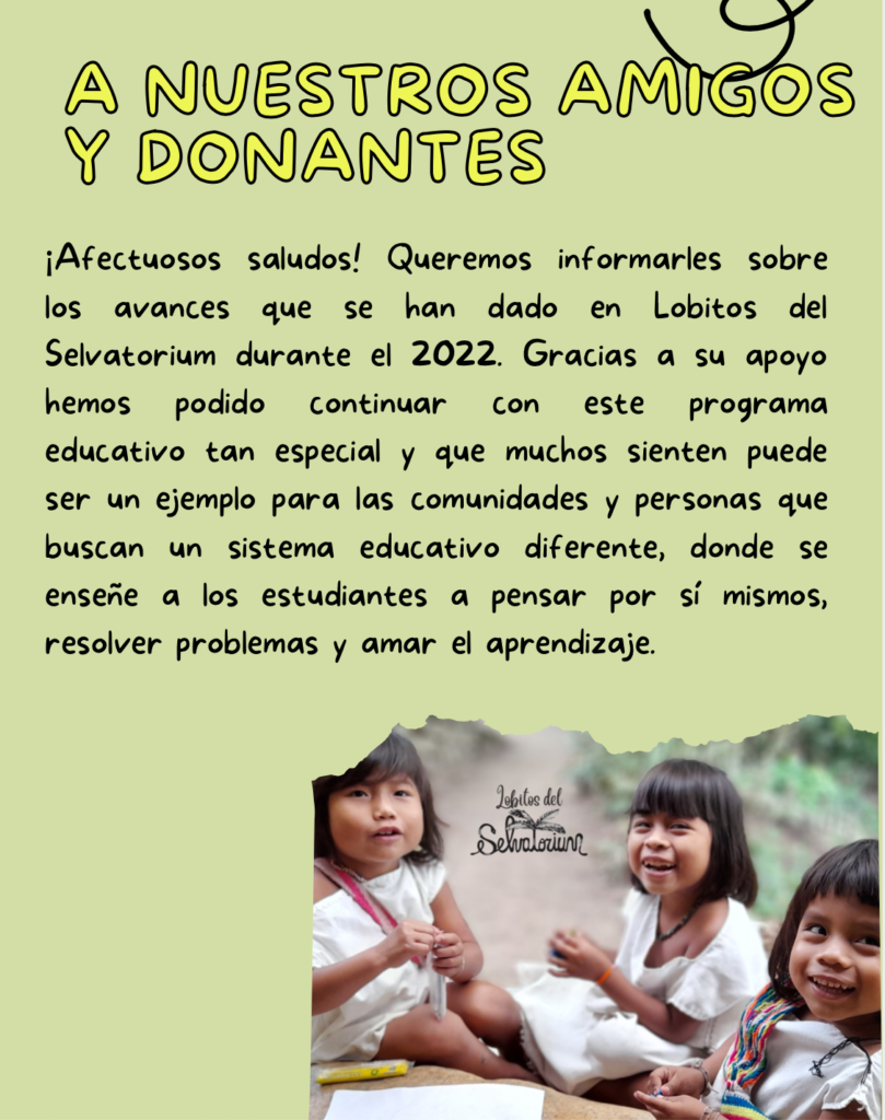 Cada año publicamos un boletín informativo donde presentamos los avances y novedades de nuestro Proyecto educativo LOBITOS DEL SELVATORIUM. Este programa funciona de 8 a 12 , todos los días, 10 meses al año desde hace 4 años. Cerramos 2022 con 27 alumnos muy contentos de tener la oportunidad de recibir una educación diferente y […]